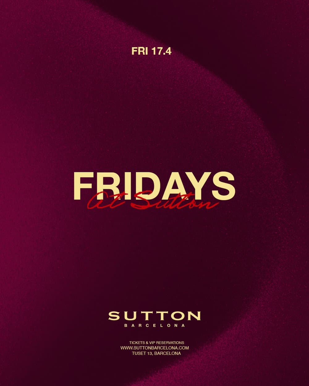 Fridays au Sutton, Barcelona (18/04/2026) | Billets